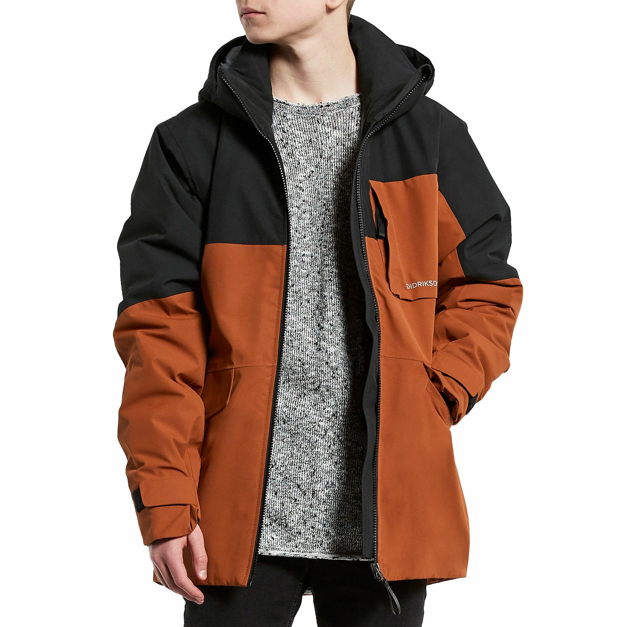 In deze jas is gebruikt gemaakt van gerecyclede vezels, hierdoor wordt verspilling van plastic tegengegaan.