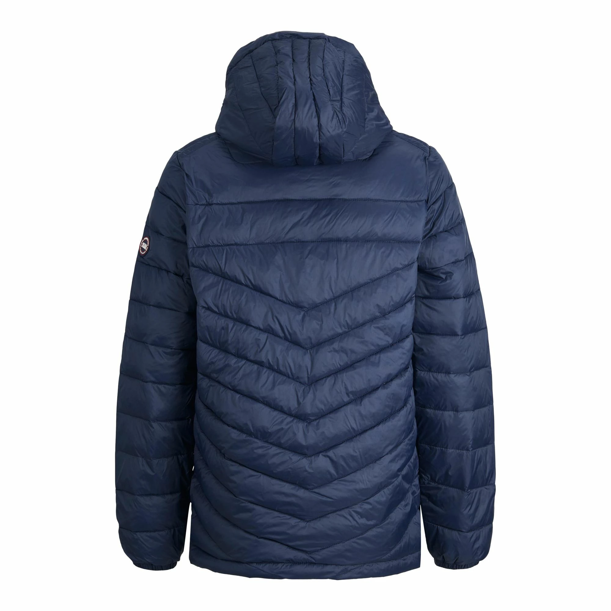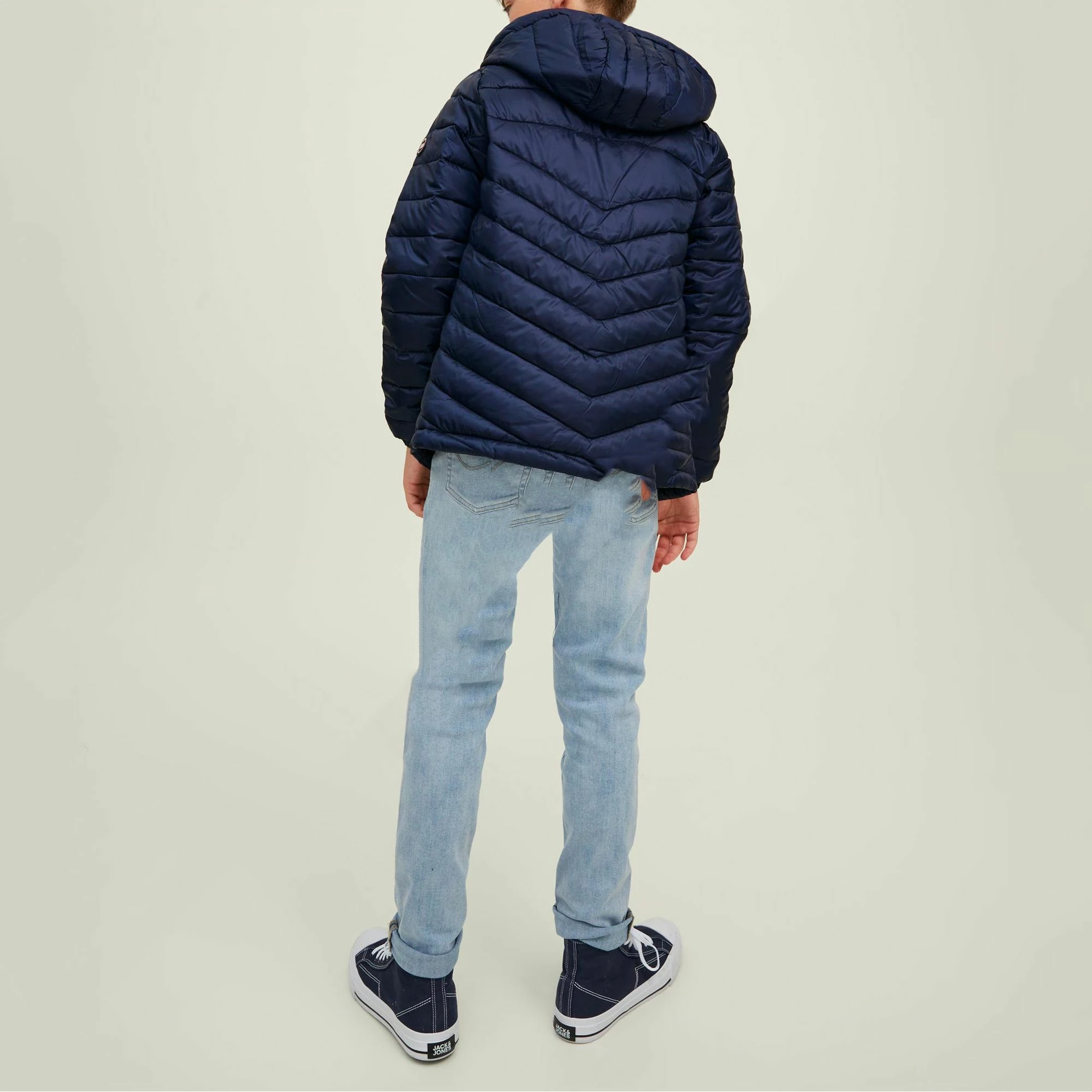Die Jack & Jones Hero Kinder Steppjacke ist eine wattierte Jacke mit Kapuze.
